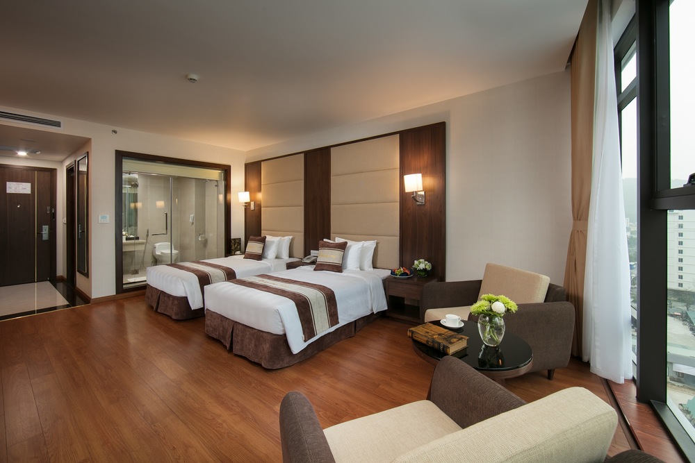Các phòng đều có cửa sổ không gian mặt kính lớn giúp quý khách thỏa sức ngắm nhìn thành phố từ nhiều hướng khác nhau. Phòng có 2 giường đơn