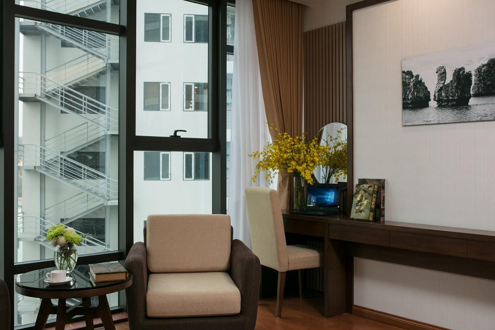 Các phòng được trang thiết bị hiện đại, cửa sổ kính rộng và có tầm nhìn hướng ra phố. Không gian phòng thoáng đãng và đầy ắp ánh sáng luôn là sự lựa chọn hoàn hảo và đáp ứng nhu cầu cho khách nghỉ ngơi và thư giãn.